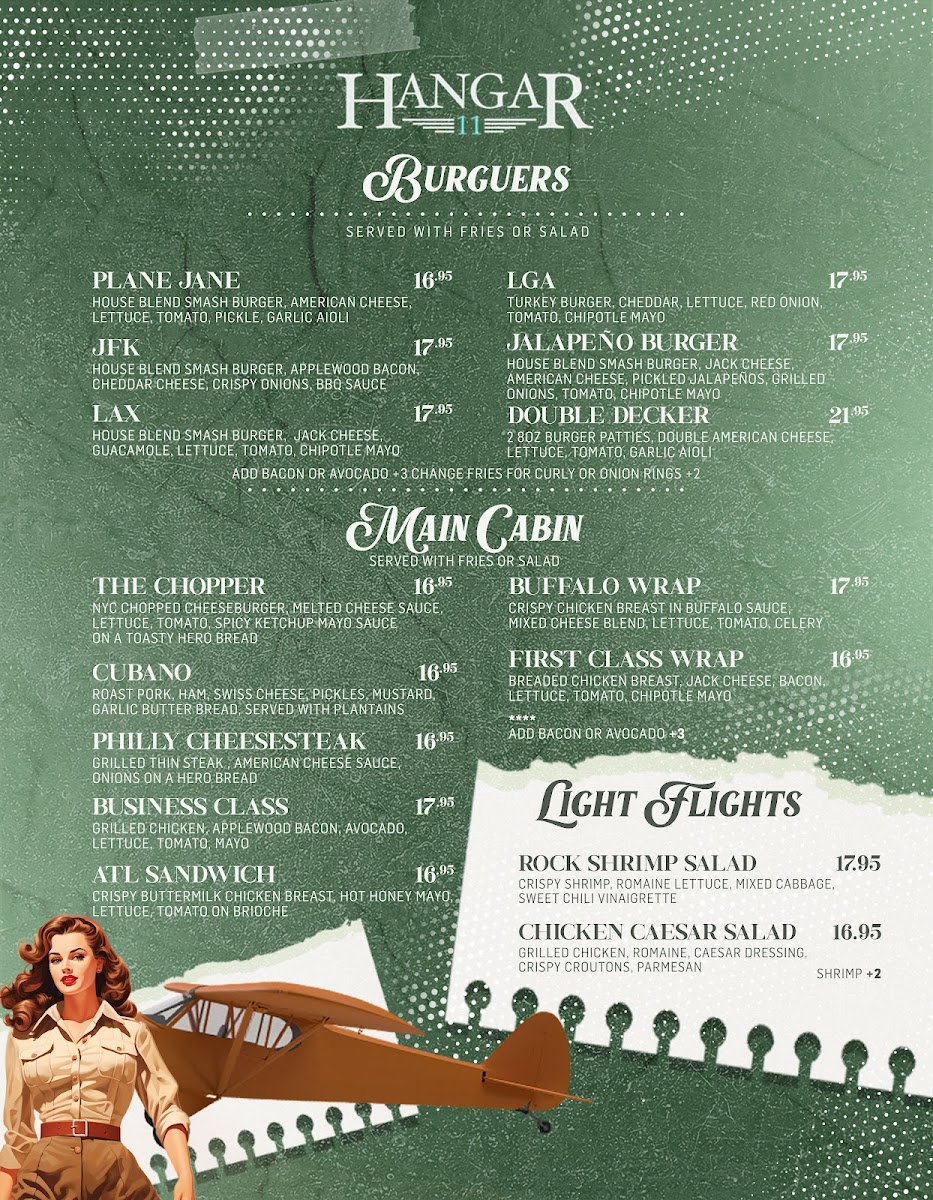 House blend smash burger, American cheese, lettuce, tomato, pickle, garlic aioli